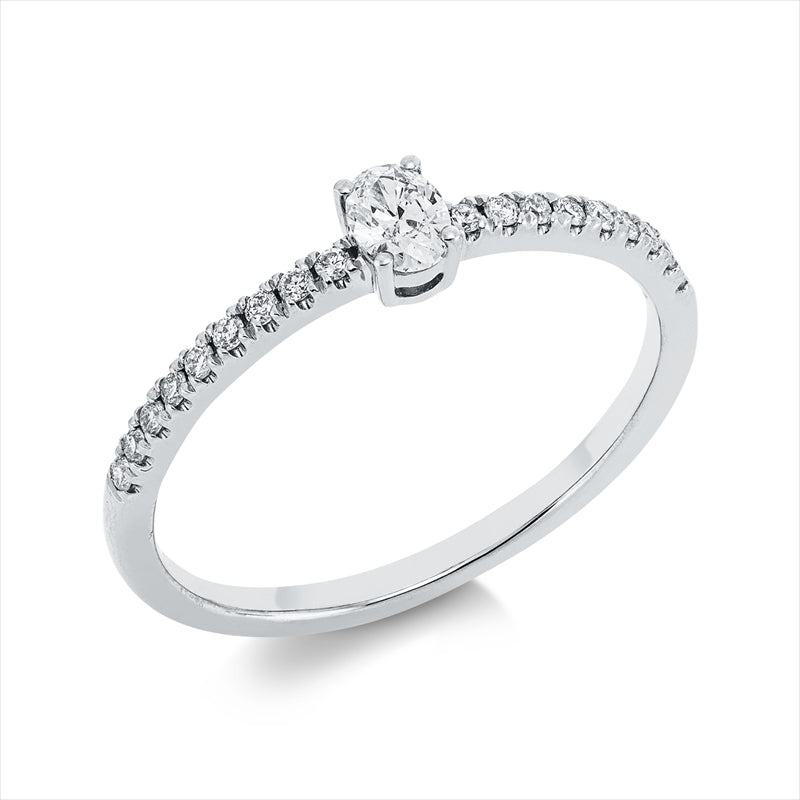 Ring 18 kt WG, 1 Oval 0,17 ct, F-vvs/vs, 18 Brill. 0,14 ct, TW-pi