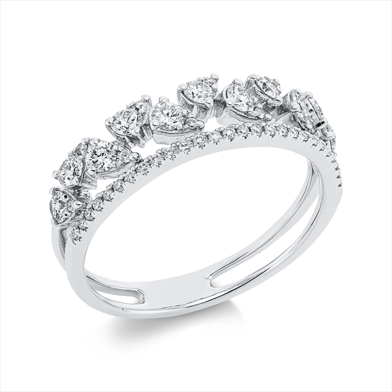 Ring 18 kt WG. 11 Brillanten 0.66 ct. TW-si. 38 Brillanten 0.14 ct. TW-si. Weite:54