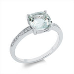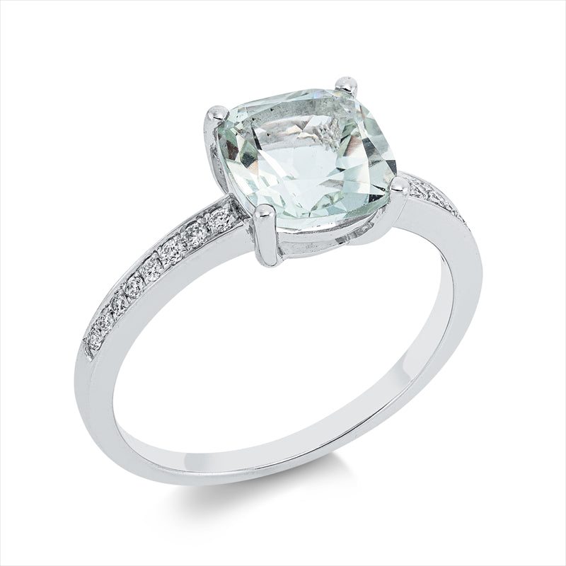Ring 18 kt WG, 6 Brill. 0,05 ct, F-vsi/si, 10 Brill. 0,05 ct, F-vsi/si, 1 Amethyst 2,03 ct grün