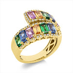 Ring 18 kt GG, 60 Brill. 0,29 ct, F-vsi, 12 Saphire 4,11 ct multicolor