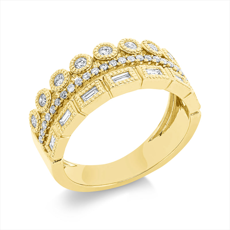 Ring 14 kt GG, 9 Brill. 0,23 ct, TW-pi, 7 Bag. 0,23 ct, F-vsi/si, 25 Brill. 0,15 ct, TW-pi