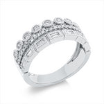Ring 14 kt WG. 9 Brillanten 0.22 ct. TW-pi. 7 Baguette 0.20 ct. F-vsi/si. 25 Brillanten 0.15 ct. TW-pi. Weite:53
