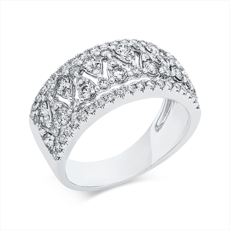 Ring 18 kt WG, 53 Brill. 0,59 ct, TW-si, 13 Brill. 0,70 ct, TW-si, 13 Brill. 0,09 ct, TW-si
