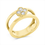Ring 18 kt GG Kleeblatt. Fassung rhodiniert. 4 Brillanten 0.29 ct. TW-si. 1 Brill. 0.02 ct. TW-si. Weite:54