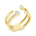 Ring 18 kt GG. 2 Tropfen 0.21 ct. F-vsi/si. 6 Baguette 0.15 ct. F-vsi/si. 4 Brillanten 0.03 ct. TW-si. B:7.9 mm. Weite:54