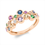 Ring 18 kt RG, 2 Brill. 0,05 ct, TW-si, 12 Saphire 0,80 ct multicolor, 3 Tsavorith 0,14 ct grün