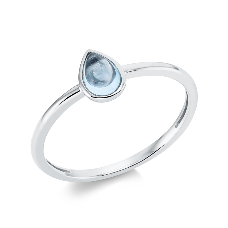 Ring 18 kt WG Tropfen. 1 Topas 0.57 ct sky blue. H:5.1 mm. B:6.9 mm. Weite:54