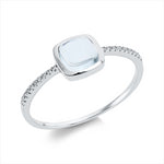 Ring 18 kt WG cushion. 20 Diamanten 0.05 ct. TW-si. 1 Topas 1.02 ct sky blue. H:7.1 mm. B:6.7 mm. Weite:54