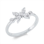 Ring 18 kt WG Schmetterling. 4 Navette 0.35 ct. TW-si. 3 Brillanten 0.06 ct. TW-si. H:14.0 mm. B:7.1 mm. Weite:54