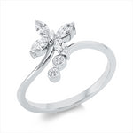 Ring 18 kt WG. 1 Brill. 0.01 ct. TW. 4 Navette 0.37 ct. TW-si. 1 Brill. 0.01 ct. TW-si. H:10.4 mm. B:11.7 mm. Weite:54