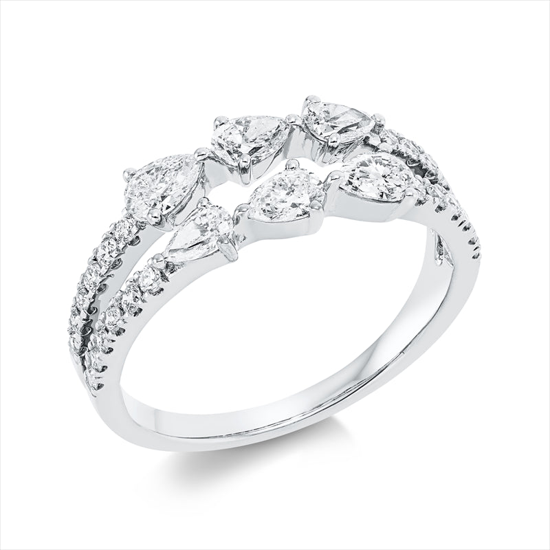 Ring 18 kt WG. 6 Tropfen 0.78 ct. TW-si. 24 Brillanten 0.24 ct. TW-si. Weite:54