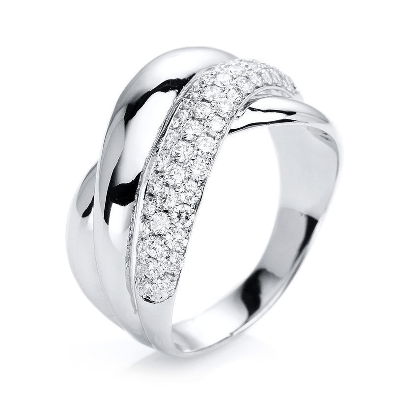 Ring 18 kt WG. 46 Brillanten 0.57 ct. TW-si. H:20.0 mm. B:10.5 mm. S:4.1 mm. Weite:54