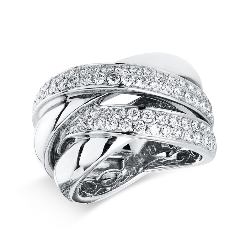 Ring 18 kt WG. 77 Brillanten 1.40 ct. TW-vsi. B:14.6 mm. Weite:55
