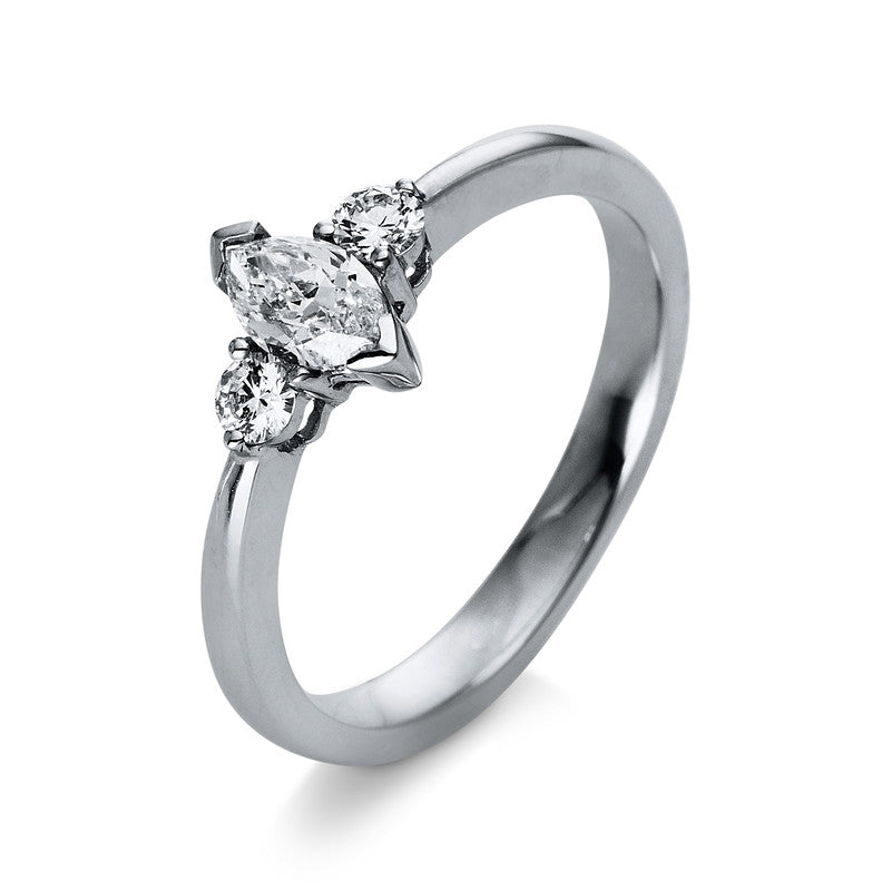 Ring 2er-Krappe 18 kt WG. 1 Navette 0.39 ct. TW-vsi. 2 Brillanten 0.14 ct. TW-vsi. Weite:53