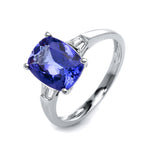 Ring 14 kt WG, 4 Trap. 0,17 ct, TW-si, 1 Tansanit 3,72 ct blau