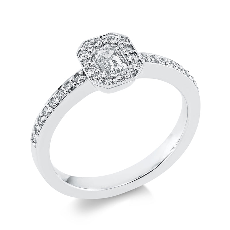Ring 18 kt WG, 1 Sm.schliff 0,32 ct, TW-vsi, 30 Brill. 0,24 ct, TW-vsi