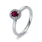 Ring 18 kt WG, 14 Brill. 0,07 ct, TW-si, 1 Rubin 0,42 ct rot