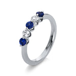 Ring 18 kt WG. 2 Brillanten 0.22 ct. TW-vsi/si. 3 Saphire 0.42 ct blau. H:15.7 mm. B:2.9 mm. S:2.0 mm. Weite:53