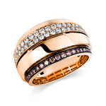 Ring 14 kt RG. Fassung teils schwarz rhodinie. 49 Brillanten 0.61 ct. TW-si. 23 Brillanten 0.27 ct. braun. B:13.4 mm. Weite:55