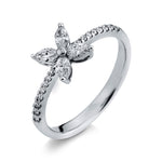 Ring 18 kt WG. 4 Navette 0.34 ct. TW-vsi/si. 16 Brillanten 0.13 ct. TW-vsi/si. B:7.4 mm. Weite:55