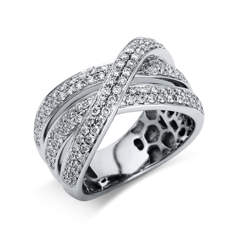 Ring 18 kt WG. 146 Brillanten 1.10 ct. TW-vsi. B:12.5 mm. Weite:53