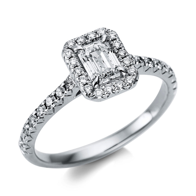 Ring 18 kt WG, 1 Sm.schliff 0,54 ct, TW-si, 34 Brill. 0,39 ct, TW-si