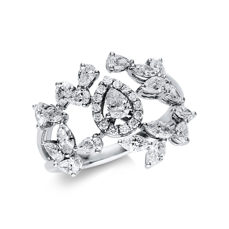 Ring 18 kt WG. 13 Tropfen 1.03 ct. TW-si. 7 Navette 0.53 ct. TW-si. 14 Brillanten 0.11 ct. TW-si. Weite:53