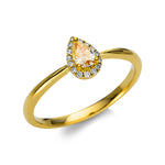 Ring 18 kt GG, 15 Brill. 0,06 ct, TW-si, 1 Tropfen 0,20 ct, gelb