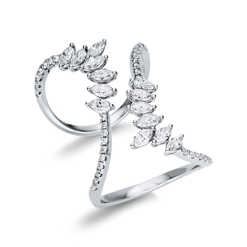 Ring 18 kt WG. 14 Navette 1.25 ct. TW-si. 34 Brillanten 0.25 ct. TW-si. S:29.4 mm. Weite:54