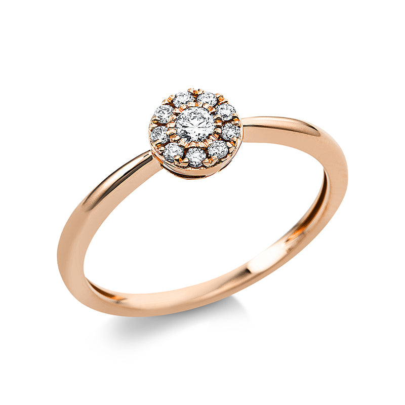 Ring 18 kt RG, 1 Brill. 0,08 ct, TW-si, 9 Brill. 0,09 ct, TW-si