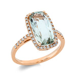 Ring 18 kt RG, 44 Brill. 0,24 ct, TW-si, 1 Amethyst 3,60 ct grün
