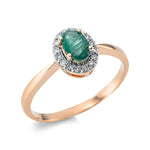 Ring 18 kt RG, Fassung rhodiniert, 16 Brill. 0,10 ct, TW-si, 1 Smaragd 0,42 ct grün