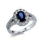 Ring 18 kt WG, 38 Brill. 0,91 ct, TW-si, 1 Saphir 1,49 ct blau