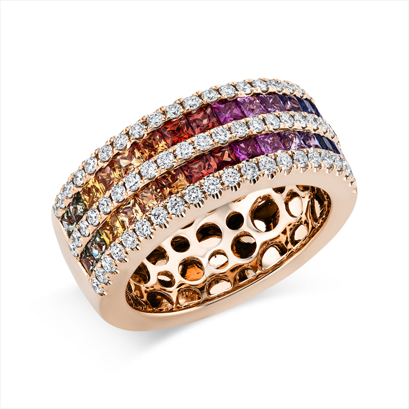 Ring 18 kt RG. 64 Brillanten 0.64 ct. TW-si. 30 Saphire 1.68 ct fancy. Weite:54