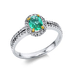Ring 14 kt WG+GG, 56 Brill. 0,25 ct, TW-si, 1 Smaragd 0,61 ct grün