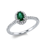 Ring 18 kt WG, 38 Brill. 0,26 ct, TW-si, 1 Smaragd 0,43 ct grün