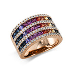 Ring 18 kt RG. 92 Brillanten 0.58 ct. TW-si. 39 Saphire 2.69 ct multicolor. B:12.1 mm. Weite:55