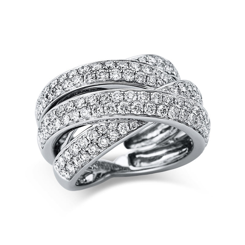 Ring 18 kt WG. 134 Brillanten 2.49 ct. TW-vsi. B:12.2 mm. Weite:53