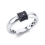 Ring 18 kt WG. Fassung teils schwarz rhodinie. 30 Brillanten 0.22 ct. schwarz. H:5.8 mm. B:6.1 mm. Weite:54